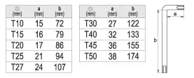 • T10, T15, T20, T25, T27, T30, T40, T45, T50