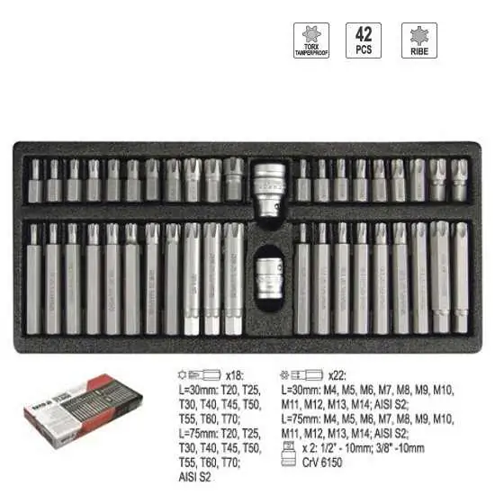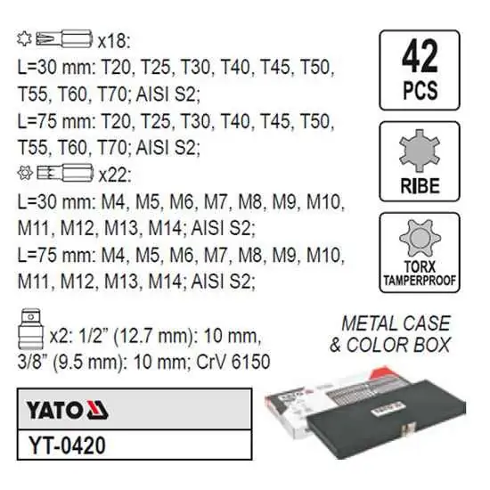 • Naziv proizvoda: Garnitura nastavka sa adapterom 1/2" 3/8" TORX 42 dela YATO
