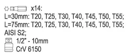 • Naziv proizvoda: Garnitura nastavka sa adapterom 1/2" TORX 15delova YATO