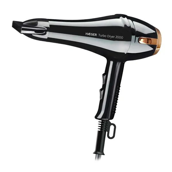 • Fen HAEGER Turbo Dryer 2000 pruža brzo, efikasno sušenje uz potpunu kontrolu temperature – idealan za svakodnevnu upotrebu i profesionalne rezultate kod kuće. Snabdeven 2000 W DC motorom, nudi izuzetnu snagu i trajnost, dok mu dve brzine i tri nivoa toplote omogućavaju prilagodljivost svim tipovima kose – od fine do guste i kovrdžave. Ugrađen „Non-Stop“ sistem protiv pregrevanja štiti motor od termičkog opterećenja, omogućavajući duže sesije bez prekida. Uklonjivi filter olakšava čišćenje i održava visoke performanse, a uz fen dolaze dva ključna dodatka: koncentrator za precizno glačanje i difuzor za istaknute kovrdže i prirodnu zapreminu. Savremeni, ergonomski dizajn i funkcionalnost čine ga pouzdanim alatom za sve koji žele brzu, nežnu i profesionalnu nežu kose svakog dana.
