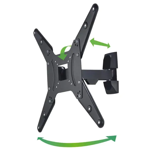 • Hama zidni okretni TV nosač sa jednom rukom namenjen je za ekrane dijagonale od 81 do 165 cm (32" do 65") i maksimalne nosivosti do 20 kg. Nosač podržava sve VESA standarde od 75x75 do 400x400, a udaljenost od zida može se podešavati od 5,6 do 22,2 cm. Omogućava okretanje do 180° i podešavanje nagiba od 5° do -12°, što pruža fleksibilnost u podešavanju optimalnog ugla gledanja. Nosač je opremljen menadžerom kablova, libelom i visokokvalitetnim Fischer setom za jednostavnu i brzu instalaciju. Eco-Friendly dizajn uključuje FSC-sertifikat, što znači da papir i karton u pakovanju potiču iz održivog šumskog gazdovanja, a pakovanje je 100% bez plastike, smanjujući plastični otpad i povećavajući mogućnost recikliranja. Proizvod dolazi sa 10 godina garancije.