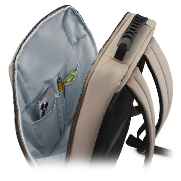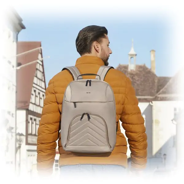 • Hama Premium Lightweight ranac za laptop predstavlja savršen spoj funkcionalnosti, praktičnosti i ekološke svesti, namenjen korisnicima koji žele lagan, udoban i pouzdan ranac za svakodnevnu upotrebu. Napravljen je od 100% recikliranog poliestera (R-PET), što ga čini izuzetno lakim, ali istovremeno izdržljivim i otpornim na svakodnevne izazove. Ranac je dizajniran za laptopove dijagonale do 41 cm (16,2") i poseduje specijalnu pregradu koja pruža sigurnu zaštitu uređaja tokom transporta. Dodatna pregrada za tablet dijagonale do 37,1 cm (14,6") omogućava sigurno nošenje i drugih digitalnih uređaja. Veliki prednji džep sa strukturom organizatora pruža dovoljno prostora za sve poslovne dodatke, beleške, punjače ili privatne sitnice, dok traka za kačenje na kolica olakšava transport prtljaga na putovanjima. Traka sa čičak trakom dodatno osigurava laptop i drži ga stabilno na svom mestu, čime se smanjuje rizik od oštećenja. Sa spoljašnjim dimenzijama od 42 x 38 x 13,5 cm, zapreminom od 19 litara i masom od samo 570 g, ranac je dovoljno prostran za sve što vam je potrebno, a istovremeno lagan i jednostavan za nošenje. Bež boja i moderan dizajn čine ga univerzalnim izborom za poslovne i privatne aktivnosti, pružajući elegantan i praktičan dodatak svakodnevnom životu.