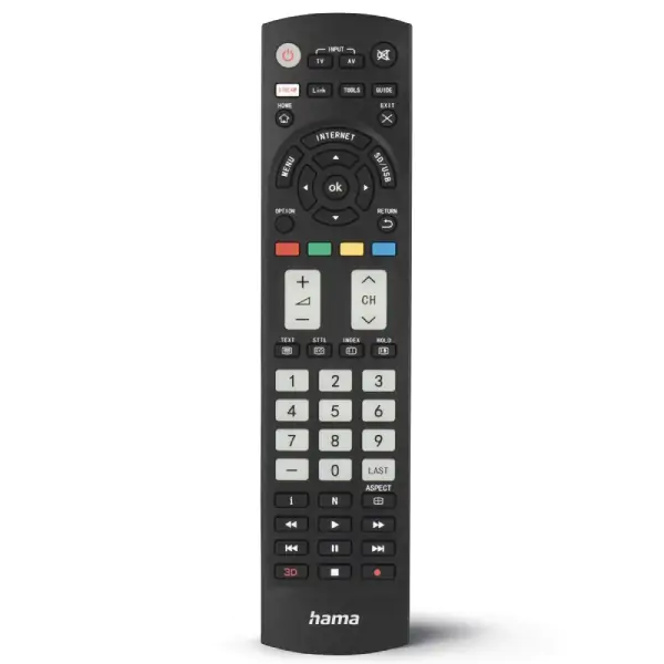 • HAMA univerzalni zamenski daljinski upravljač za Panasonic televizore pruža sve funkcije originalnog daljinskog, omogućavajući jednostavnu i potpunu kontrolu nad uređajem. Daljinac dolazi unapred podešen za većinu Panasonic modela, a dodatna mogućnost programiranja kodova omogućava podešavanje i za ređe modele televizora. Specijalne tipke namenjene za Panasonic olakšavaju upravljanje, dok ergonomski glavni tasteri omogućavaju jednostavnu kontrolu jačine zvuka i promena kanala. Memorija funkcija čuva sve postavke čak i prilikom zamene baterija, što doprinosi praktičnosti i pouzdanosti svakodnevnog korišćenja. Daljinac predstavlja idealno rešenje za zamenu originalnog uređaja i jednostavno upravljanje televizorom bez gubitka funkcionalnosti.