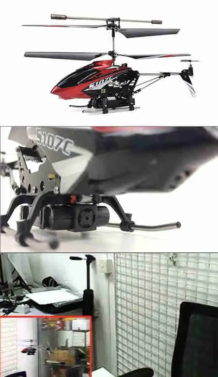• Helikopter je poznatog proizvodjača Syma. Helikopter je najpopularnije serije S107G ali sa dodatkom male kamere. Kamera je od 300.000 pixela.