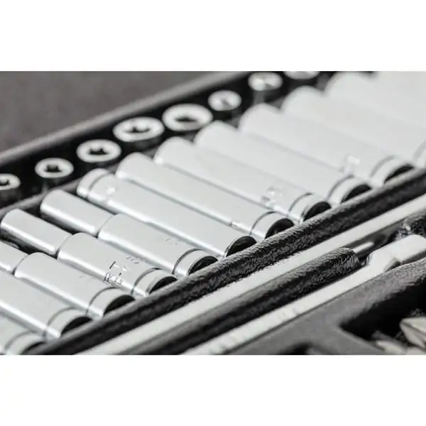 Profesionalni prenosivi set od 65 delova - nasadni ključevi sa bitovima i dodatnom opremom.Svi delovi izrađeni od legure čelika visokih performansi sa ...