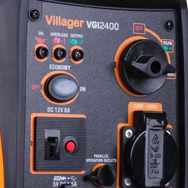 • Villager VGI 2400 poseduje više izlaza (230V, 12V i 5V), što omogućava istovremeno napajanje različitih uređaja. Zahvaljujući inovativnom dizajnu, agregat radi tiho i efikasno, uz minimalnu potrošnju goriva i niske emisije.