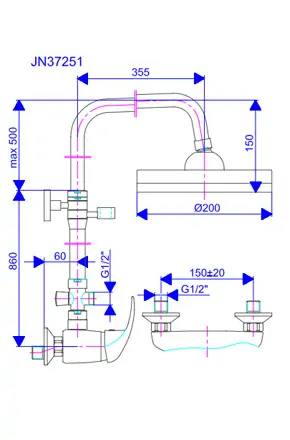 Jednoručna slavina - baterija za tuš kadu sa usp. tušem Nexus JN37251 ROSAN