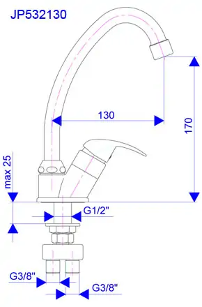• Naziv proizvoda: Jednoručna slavina - ventil za hladnu vodu sa predmesanjem vode, izliv 130mm Perla JP532130 ROSAN