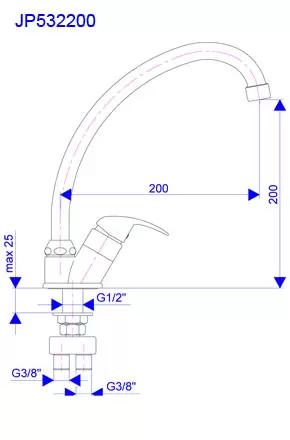 • Naziv proizvoda: Jednoručna slavina - ventil za hladnu vodu sa predmesanjem vode, izliv 200mm Perla JP532200 ROSAN