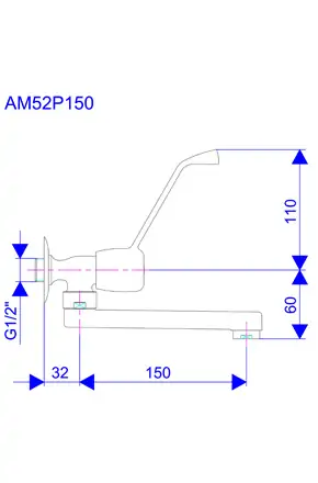 • Naziv proizvoda: Jednoručna zidna slavina - ventil 1/2'' g.deo - donji izliv 150mm MEDICAL Rosan AM52P150