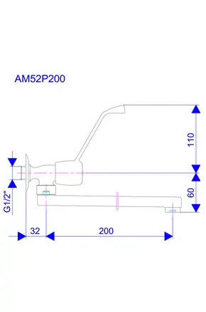 • Naziv proizvoda: Jednoručna zidna slavina - ventil 1/2'' g.deo - donji izliv 200mm MEDICAL Rosan AM52P200