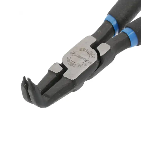 • Klešta sa savijenim vrhom namenjena su za montažu i demontažu unutrašnjih Seeger prstenova. Izrađena su od visokokvalitetnog hrom-vanadijum čelika, što im daje izuzetnu čvrstoću i otpornost na deformacije. Kaljene čeljusti omogućavaju dugotrajan rad i precizno hvatanje prstenova, dok dvokomponentne drške pružaju udoban i siguran hvat tokom korišćenja. Ova klešta su idealna za srednje i zahtevne radove u servisima i industriji, gde je potrebna pouzdanost i preciznost.