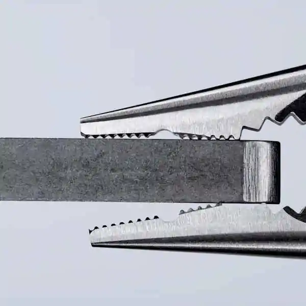 • Površina za hvatanje jednostrano konveksna - za sigurno hvatanje pljosnatih delova. ižleb u oblasti hvatanja omogućava da se mali alati kao što su ekseri, igle i zavrtnji drže i bezbedno povlače. Pouzdana i raznolika kombinovana Špicasta klešta za put. Lagano rezanje zbog zgloba velikog prenosa sile. sa oštricama za mekanu, srednje tvrdu i tvrdu žicu. Oštrice dodatno indukcijski kaljene, tvrdoće oko 61 HRC.