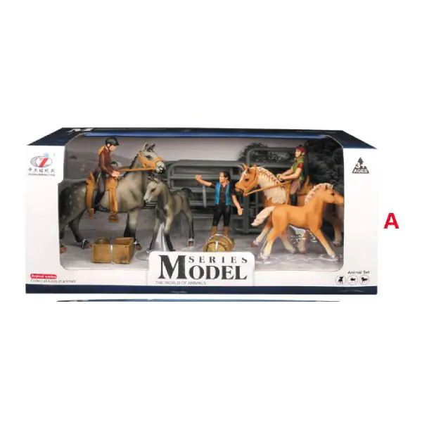 • Set uključuje: Delove za sklapanje ograde (paneli, kapija), konje (2 ili više figura), 3 figure ljudi