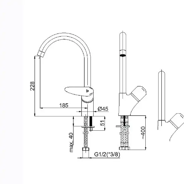 • Slavina se isporučuje sa 40 cm  crevima.
