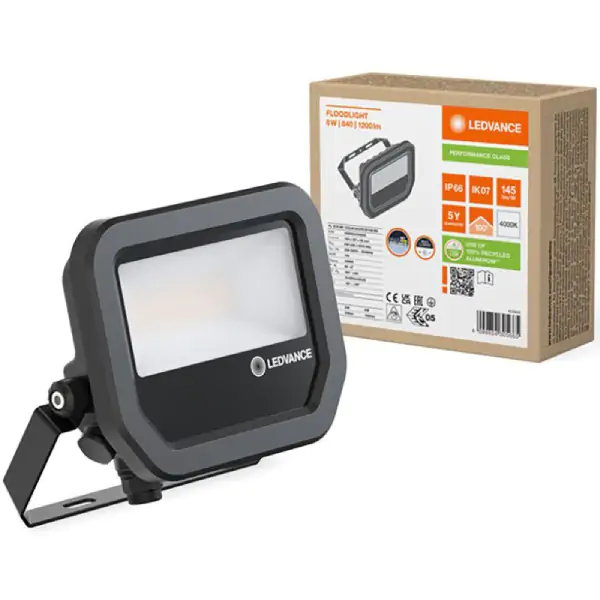 • LEDVANCE LED senzor svetiljka snage 8 W / 6 W, namenjena za priključak na standardnu mrežu 220–240 V sa frekvencijom od 50–60 Hz. Svetiljka ima nominalnu struju od 40 mA za 8 W i 30 mA za 6 W, emituje hladno belo svetlo (Cool White) temperature 4000 K sa svetlosnim tokom od 1200 lm / 850 lm i efikasnošću od 145 lm/W. Dizajnirana je u crnoj boji i pruža pouzdano, energetski efikasno osvetljenje za različite prostorije.