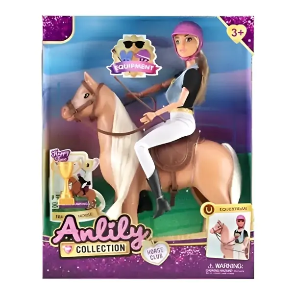 • Ovaj set omogućava mališanima da uživaju u jahanju i takmičenju, sa svim detaljima za autentičnu igru uloga. Lutka džokejka je spremna za trku – obučena u tradicionalnu džokejsku opremu (šarena majica, bele pantalone, čizme), sa pokretnim rukama i nogama koje joj omogućavaju da sedne na konja, drži uzde i nagne se napred tokom galopa. Konj je detaljno izrađen – sa sedlom, uzdom, stremenima, repom i grivom koja se može češljati. Zajedno, džokejka i konj mogu da učestvuju na takmičenjima, preskaču prepreke, galopiraju kroz cilj i podižu pehar pobednika. Dodaci za džokejku uključuju pehar (zlatni ili srebrni, sa postoljem) koji se dodeljuje pobedniku, naočare za zaštitu od sunca i vetra tokom trke, i šlem koji štiti glavu i simbolizuje bezbednost u džokejskom sportu. Konj može da stoji samostalno ili na postolju, a lutka može da sedne na njega i da se skine. Set podstiče maštu i kreativnu igru, razvija ljubav prema konjima, jahanju, sportu i takmičenjima, uči o pobedi, porazu, fer pleju i upornosti. Idealno za decu koja vole konje, jahanje, trke, takmičenja i život na selu ili ranču. Preporučuje se za decu od 3 godine naviše.