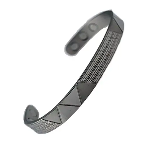 Magnetna narukvica od bakra sa titanijumom pospešuje cirkulaciju.Napravljena od titanijuma, sadrži šest trajnih magneta, jačine magnetnog polja 1200 gausa. Magnetno polje u regionu ručnog zgloba deluje na krvne sudove, pospešuje cirkulaciju, reguliše i stabilizuje pritisak, poboljšava kvalitet sna, podiže radnu sposobnost i opšte stanje organizma. Titanijum je biološki najkompatibilniji materijal, i kao takav se skoro tri decenije ugrađuje u telo, u vidu veštačkih zglobova, stentova, veštačkih zalistaka, implantata u stomatologiji, ... Nakit od titanijuma ne daje alergijske reakcije, i otporan je na oštećenja, zbog čega u svetu uživa veliku popularnost, i sve je traženiji.