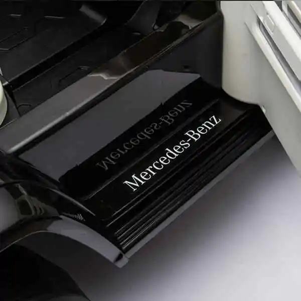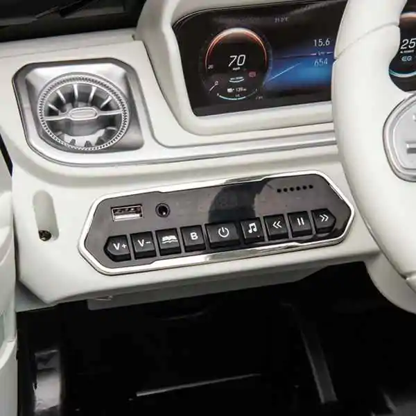 • Licencirani Mercedes EQG 4X4 Crni dečiji električni automobil donosi vrhunsko iskustvo vožnje, osmišljen sa svim detaljima koji pružaju autentičnost i radost malim vozačima. Opremljen premium paketom opreme, uključuje meko kožno sedište, EVA gume najvišeg kvaliteta, prednja i zadnja svetla, vrata sa sigurnosnom bravom i sigurnosni pojas za maksimalnu bezbednost. Sa četiri snažna motora od 35W (ukupno 140W) i kvalitetnim akumulatorom od 12V 9A, garantuje dugotrajnu zabavu i odlične performanse. Roditelji mogu preuzeti kontrolu putem 2.4G daljinskog upravljača, dok mališani mogu uživati u samostalnoj vožnji uz pomoć papučice za gas. Instrument tabla opremljena je AUX, USB ulazom i Bluetooth funkcijom za slušanje muzike. Brzina vozila je prilagođena deci (3–5 km/h), a preporučena nosivost iznosi 30 kg. Dimenzija 121 x 74 x 62 cm, izrađen od najkvalitetnijih materijala u skladu sa EU standardima (AS, CE, EN71-1/-2/-3, EMC), ovaj model pruža sigurnu i autentičnu zabavu.