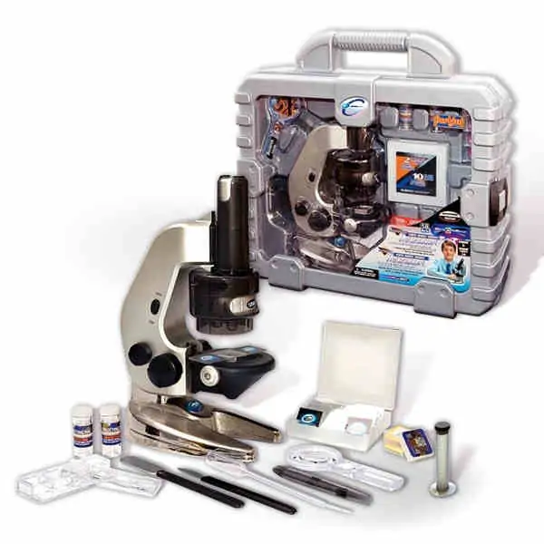 • Mogućnost uveličavanja je 100,600 i 1200x. komplet sadrži 58 elemenata kao npr: optička staklena sočiva za izoštravanje slike, preparate za posmatranje, lupe, pipetu,.
