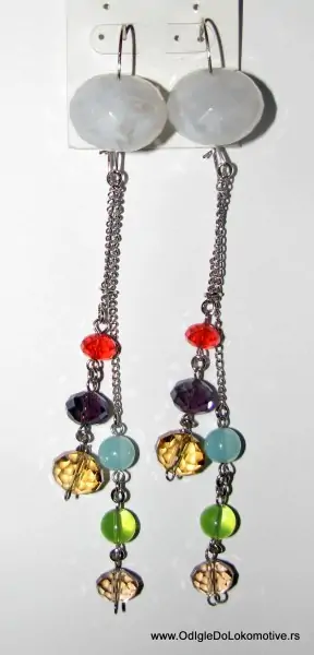 Nakit ručna izrada Minđuše kombinacija bele perle i staklenih kristalića/ boje zlata, ljubičastih, crvenih, zelenih, plavih i bež -na osnovi u boji srebra