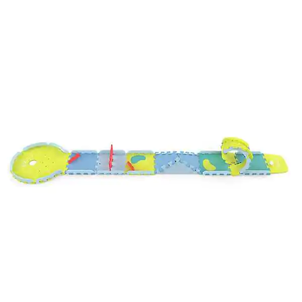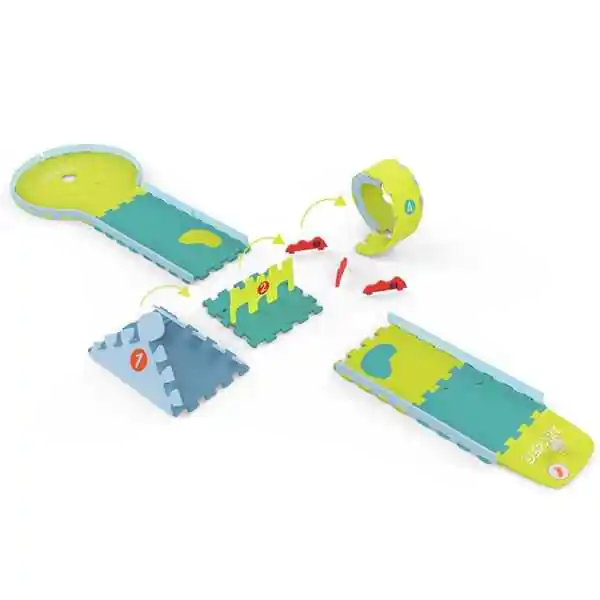 • Set sadrži 44 međusobno poveziva dela od kvalitetne EVA pene, koja su prijatna na dodir i potpuno bezbedna za igru. Delovi se mogu slagati na različite načine, pa deca mogu svaki put osmisliti novi teren — pravi mali golf poligon koji razvija logiku i prostornu svest. Kada se komplet složi, podloga može dostići dimenzije do 300 × 30 cm u linijskom rasporedu ili 120 × 150 cm u kvadratnom obliku, što omogućava različite konfiguracije terena i neograničene mogućnosti kombinovanja.