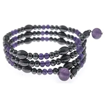 Niska od hematita Ametist, kraća - odbija negativnu energiju. Niska od 60 cm u kombinaciji su dva poludraga kamena, hematit i ametist. Hematit je mineral, jedinjenje gvožđa i kao takav, može da se namagnetiše i bude trajni magnet. U ovoj niski hematit je oblika zrna pirinča. Magnetno polje hematita je jačine 900 gausa. Pri nošenju dolazi do pomeranja niske, što izaziva male elektromagnetne struje u telu. Niska se može nositi oko vrata, struka, ručnog zgloba ili noge, što stimuliše cirkulaciju, uklanja bolove u vratu, ramenima i leđima, uravnotežuje krvni pritisak i kompletan metabolizam. Od davnina se hematit koristi kao amajlija. Veruje se da zbog visokog sjaja odbija negativnu energiju, štiti zaljubljene, stabilizuje emocije, smiruje um, i oslobađa od stresa. Za ametist se veruje da ima moć pretvaranja negativne energije u pozitivnu, povećava privlačnost osobe koja ga nosi, smiruje um i stabilizuje emocije. Šta je to magnetoterapija? Magnetoterapija predstavlja vid zdravstvene preventive čija je osnova uticaj magnetnog polja na živ organizam. Mnogobrojna medicinska istraživanja su dokazala izuzetnu važnost ove pojave po zdravlje ljudi. Praćenjem zdravstvenog stanja astronauta, koji su tokom 70-ih godina boravili u sredini bez uticaja Zemljinog magnetizma, primećeni su brojni, nespecifični simptomi kao što su glavobolja, nesanica, osteoporoza, depresija, degenerativne promene kostiju i mišića itd. Zvanična medicina nazvala je ovaj poremećaj Sindrom Nedostatka Magnetnog Polja ili SNMP. Savremeni način života u urbanim sredinama (zgrade od betona, metala i stakla) doprinosi da je uticaj Zemljinog magnetizma slabiji te su simptomi SNMP-a dosta izraženi. Tegobe SNMP-a možemo umanjiti nošenjem magneta različitog inteziteta u okviru široke palete proizvoda Dr Relax. Na ovaj način, ne samo da ćemo preventivno delovati na naše zdravlje, nego ćemo, izlaganjem magnetnom polju, prirodnim putem doprineti boljoj cirkulaciji, ujednačenijem krvnom pritisku, olakšaćemo procese zračenja i regeneracije i umanjiti bol.