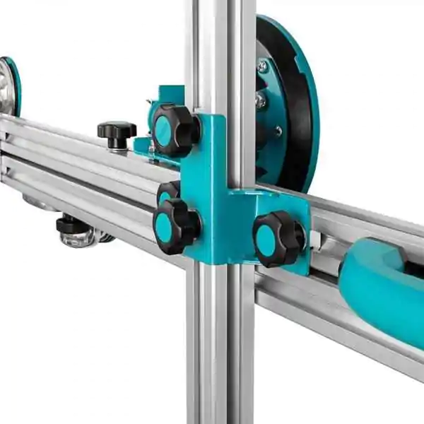 • Posebna prednost ovog modela je 2 u 1 funkcija – vakuumske čaše sa pumpom mogu se skinuti i koristiti samostalno kao ručne vakuumke za postavljanje pločica, što dodatno povećava praktičnost i isplativost alata. Sistem poseduje četiri ergonomske ručke, koje klize duž profila i imaju mehanizam za brzo otpuštanje i zaključavanje. Time je omogućeno ergonomično nošenje, ali i lakše postavljanje pločica na zid ili pod.