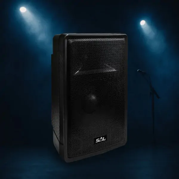 • Ova pasivna dvosistemska bas-refleksna kutija projektovana je za profesionalnu upotrebu u većim prostorijama, na sceni ili u okviru orkestarskih postavki, pružajući snažan i kvalitetan zvuk. Opremljena je velikim 15″ niskotoncem i visokotoncem od titanijuma, koji zajedno obezbeđuju dubok, precizan bas i jasne, prodorne visoke tonove. Zahvaljujući bas-refleks dizajnu, postiže se efikasnija reprodukcija niskih frekvencija, što je čini idealnom za zahtevne audio aplikacije. Može se jednostavno povezati na aktivni zvučnik ili pojačalo, prilagođavajući se različitim konfiguracijama ozvučenja. Masivna i robusna konstrukcija osigurava dugotrajnu otpornost na česta premeštanja, dok ugrađeni točkići olakšavaju transport. Za dodatnu fleksibilnost prilikom postavljanja, kutija poseduje 35 mm prihvat za montažu na stalak.