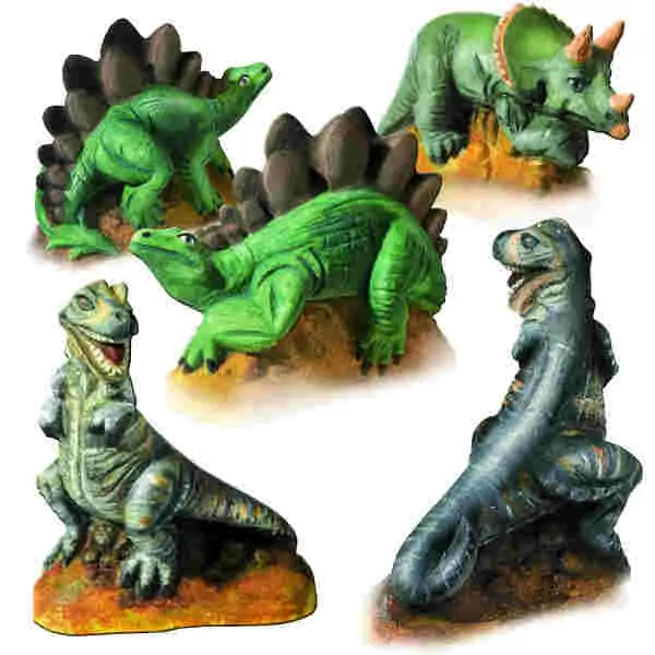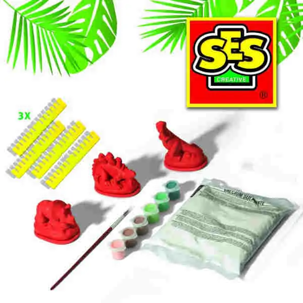 • Dinosauruse napravite izlivanjem specijalnog materijala u različite kalupe, a kada se osuše - obojite dinosauruse onako kako vam se najviše dopada.