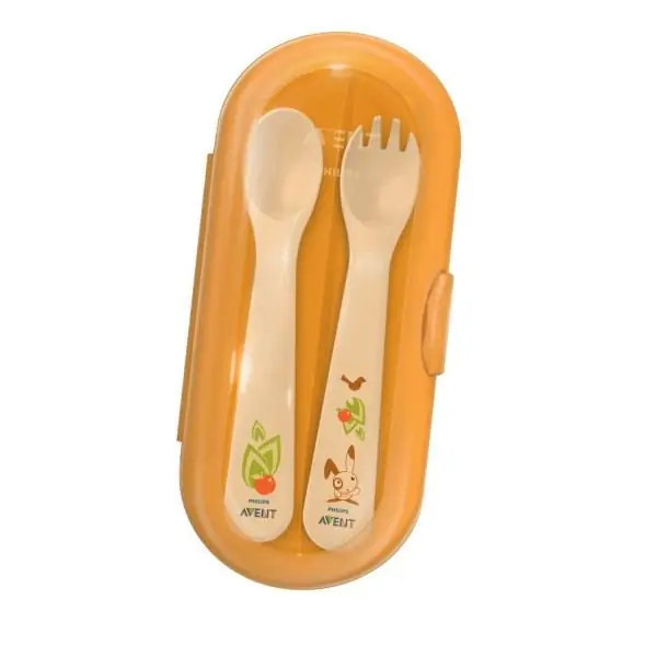 • Putni pribor za jelo sadrži kašičicu i viljušku za decu od 12+ meseci te, putnu torbicu koja održava higijenu pribora za jelo tokom putovanja.