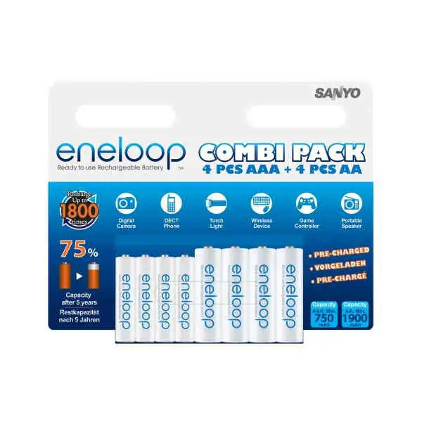 • Najnovije 2000 mAh Sanio Eneloop punjive baterije AA klase i 800 mAh AAA