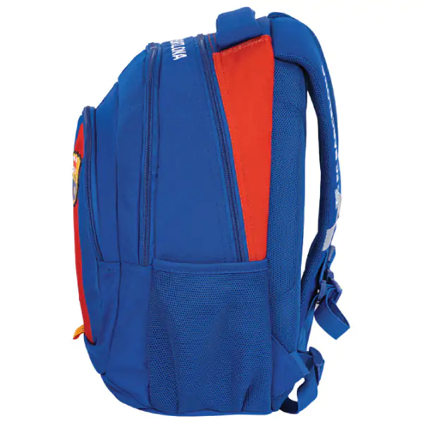 • FC Barcelona đački anatomski ranac model AB330 24./25.Astra 502024133 u plavo-crvenoj kombinaciji predstavlja savršen spoj funkcionalnosti, ergonomije i prepoznatljivog sportskog dizajna, idealan za mlade navijače i sve ljubitelje ovog čuvenog fudbalskog kluba. Izrađen je od 100% poliestera sa vodootpornim svojstvima, čime se obezbeđuje zaštita sadržaja od vlage i dugotrajnost. Ergonomski oblikovan leđni deo omogućava optimalan protok vazduha, smanjujući znojenje i povećavajući udobnost tokom dužeg nošenja, dok anatomski oblikovane naramenice sa kaiševima za podešavanje ravnomerno raspoređuju teret na ramena. Ojačana ručka za nošenje pruža siguran i udoban hvat pri ručnom nošenju. Ranac poseduje tri glavne pregrade sa zatvaranjem na zip i bočne džepove za brz pristup stvarima. U prednjem delu nalaze se pregrade za pribor i privezak za ključeve, omogućavajući preglednu organizaciju. Zaštitno gumeno dno dodatno štiti sadržaj od vlage i habanja, dok snažno reflektujući sigurnosni delovi povećavaju vidljivost u uslovima slabog osvetljenja. Predviđen je prostor za sigurno nošenje laptopa. Dimenzija 39 x 28 x 15 cm čini ga prostranim i praktičnim za svakodnevnu upotrebu.