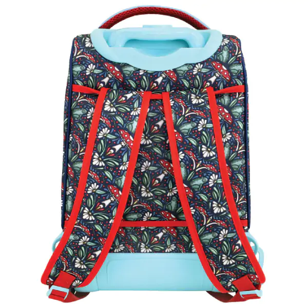 • Gorjuss đački ranac sa točkićima model Little Mushroom 1219GJ11 predstavlja savršen spoj funkcionalnosti, zaštite i prepoznatljivog poetskog dizajna, idealan za školske obaveze, putovanja i svakodnevne aktivnosti. Izrađen je od materijala koji odbija vodu i štiti sadržaj od vlage, čime se obezbeđuje dugotrajnost i sigurnost školskog pribora i ličnih stvari. Ranac je opremljen sa dve glavne pregrade sa zipom i jednim dodatnim džepom na zip, a unutar glavne pregrade nalazi se izdvojen deo za laptop ili tablet, dok druga pregrada sadrži tri držača za olovke i kopču za ključeve, omogućavajući preglednu organizaciju. Pozadi se nalazi pregrada u koju se mogu skloniti naramenice kada se ranac koristi kao kofer, uz teleskopsku ručku, ručku za nošenje i podesive ramene kaiševe za udobnost. Dimenzija 34 x 46 x 22 cm čini ga prostranim, a opet praktičnim za nošenje.