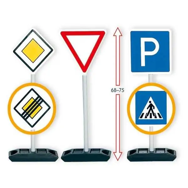 • Komplet saobraćajnih znakova sa postoljima za formiranje poligona idealno je sredstvo za upoznavanje osnovnih saobraćajnih pravila i organizovanje brojnih takmičarskih igara.