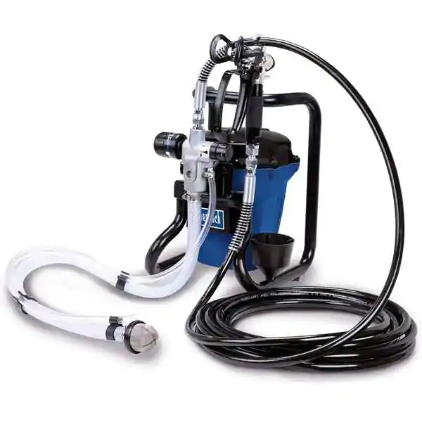 • Snažan motor od 750 W obezbeđuje dovoljno snage za kontinuiran i stabilan rad, dok maksimalan protok od 1.1 L/min (u zavisnosti od gustine boje) omogućava efikasan i brz rad na većim površinama. Integrisani regulator pritiska do 207 bara pruža mogućnost preciznog podešavanja, što doprinosi optimalnoj raspodeli boje bez zgrušavanja i prskanja. Udoban okidač dodatno poboljšava kontrolu tokom rada, omogućavajući korisniku da lako prilagodi količinu nanosa.
