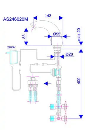 Senzorska slavina - Easy B za toplu i hladnu vodu 220V/9V STERN Rosan AS246020M