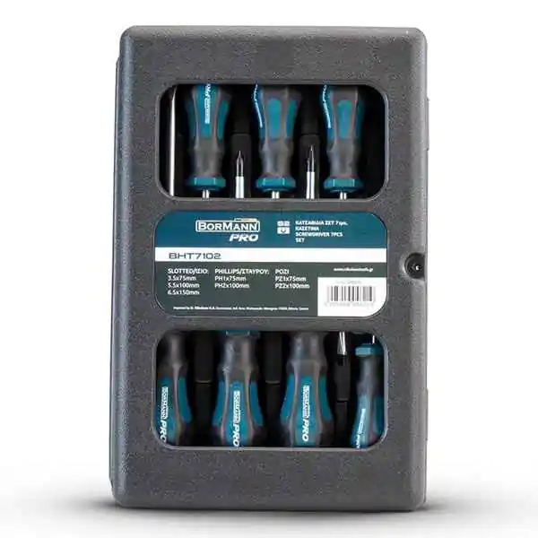 Set odvijača, 7 kom – BORMANN Pro BHT7102BORMANN Pro BHT7102 set odvijača je visokokvalitetan komplet od 7 preciznih odvijača izrađenih od S2 če ...