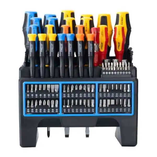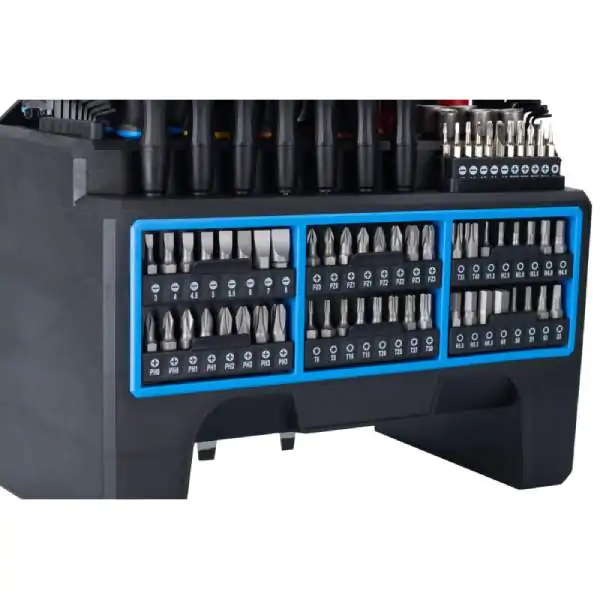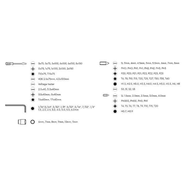 • Set obuhvata i mini odvijače sa adapterima za finu mehaniku, kao i imbus ključeve u metarskim i colovnim dimenzijama, što ga čini izuzetno svestranim izborom za širok spektar poslova – od popravki elektronike do radova u radionici i na terenu.