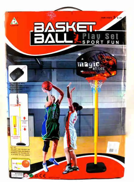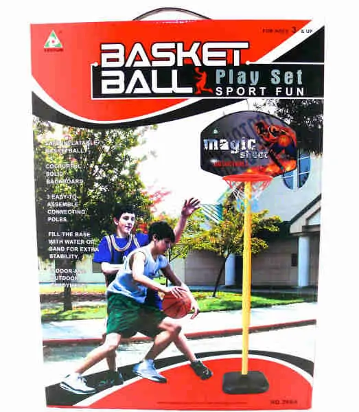 • Košarkaški set se sastoji od table za koš sa plastičnim postoljem koje se može puniti vodom ili peskom za dodatnu stabilnost i košarkaške lopte koja se lako i brzo pumpa uz pomoć pumpe koju takođe dobijate u kutiji.