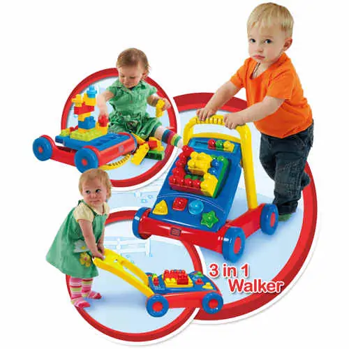 • Pomozite Vašem detetu da nauči da hoda, prepoznaje oblike i boje, i zabavlaju se gde god žele sa 3 - u-1 Build 'šetalicom
