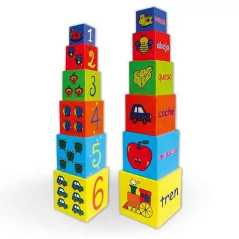 • Različiti motivi na svakoj strani kocke uče decu novim pojmovima.