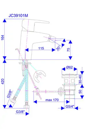 • Naziv proizvoda: Slavina - baterija za bide - sa metalnim odlivnim ventilom Cubo3 JC39101M ROSAN