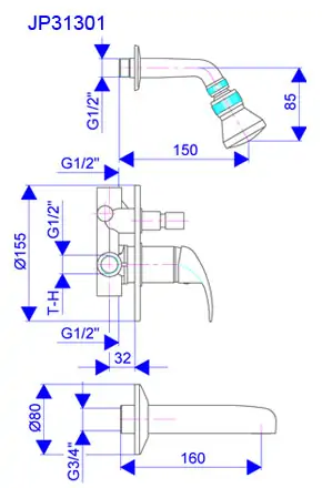 • Konzola tuša L. 150mm