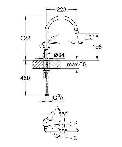 Slavina-baterija za sudopere visoka Eurosmart Grohe
