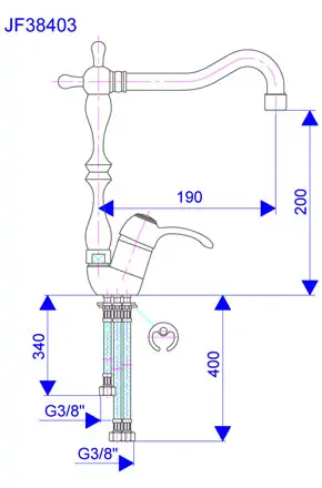 • Naziv proizvoda: Slavina-Baterija za sudoperu JF38403 sa 3 cevi za protočni bojler ROMA izliv Jaffar ROSAN