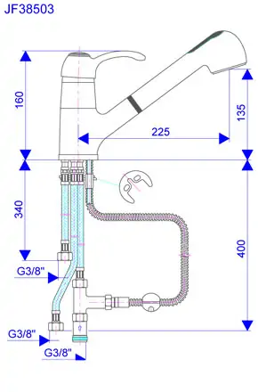 • Naziv proizvoda: Slavina-Baterija za sudoperu sa 3 cevi za protočni bojler sa izvlačnim tušem za ispiranje Jaffar ROSAN