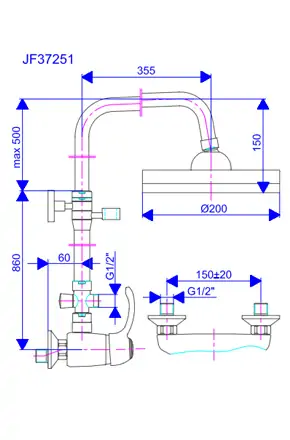 Slavina - baterija za tuš kadu sa usp. tušem Jaffar JF37251 ROSAN