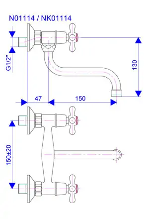 • Naziv proizvoda: Slavina-Baterija zidna donji izliv 150mm Nostalgija ROSAN