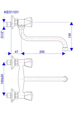 Slavina-Baterija zidna donji izliv 200mm Euro Klasik ROSAN